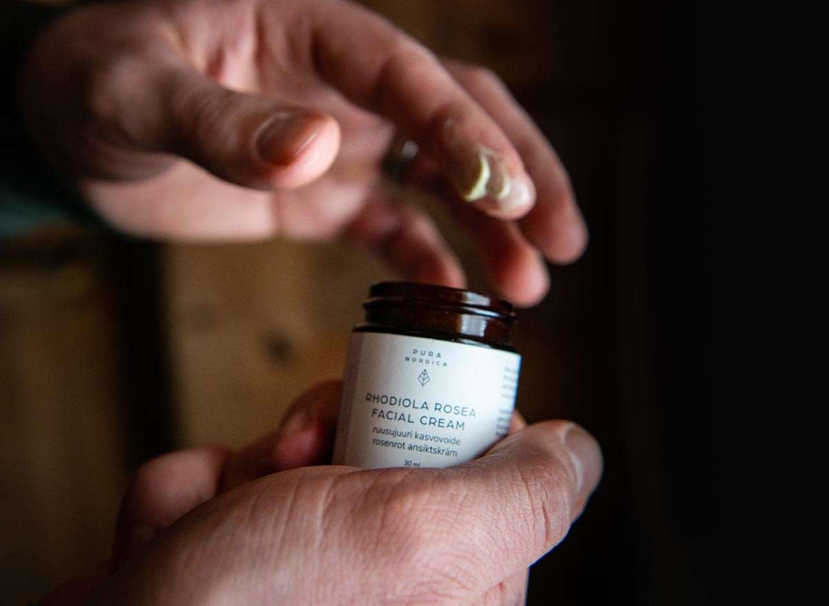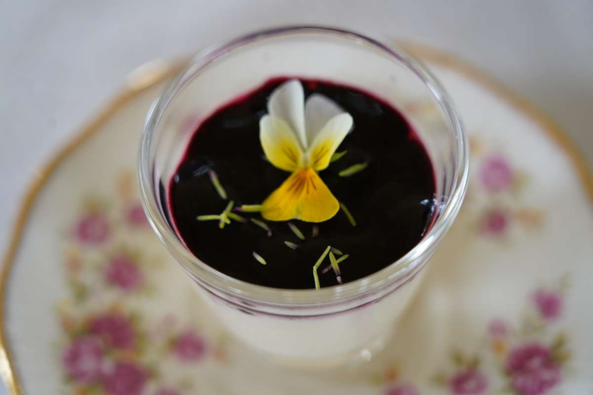 Als Nachtisch gibt es Pannacotta mit Blaubeersoße, ein traditionelles Rezept von Nina Kekäläinen. Niina teilt nicht nur Riitas Leidenschaft fürs Kochen. Unter dem Label Pura Nordica stellt sie im Puhos Industriegebiet finnische Naturkosmetik her und bietet auch spezielle Kräuterführungen und Kochkurse für Touristen an.