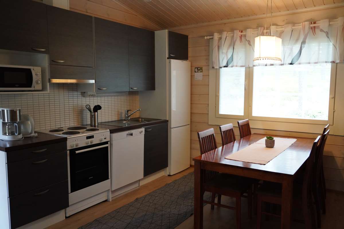 Unser recht komfortables Mökki liegt versteckt zwischen Kiefern, nicht weit vom Seeufer entfernt. Es bietet eine Küche, ein Wohnzimmer, zwei Schlafzimmer, eine Sauna und sogar eine Waschmaschine. Wer keine eigene Sauna hat, kann eine der drei Familiensaunen am Strand anmieten, darunter eine traditionelle Savusauna, eine finnische Rauchsauna. Aktivitäten gibt es ganzjährig. Im Sommer locken Beachvolleyball, Minigolf, Diskgolf, Tischtennis, ein Fitnesspfad sowie ein Kajak- und Bootsverleih, im Winter eine zwei kilometerlange Langlaufloipe und Schneeschuhwandern. Mutige können hier am Puruvesi bei Minusgraden auch ihr Durchhaltevermögen beim Eislochbaden unter Beweis stellen. Angeln ist sogar ganzjährig möglich. Im Sommer können Gäste auch Fahrräder ausleihen. Das Ruoke Feriendorf ist somit der ideale Ort, um das finnische Lebensgefühl und Finnlands unberührte Natur hautnah zu erleben: Entweder beim Wandern, beim Paddeln auf dem See, in der Sauna oder bei langen Spaziergängen entlang des idyllischen Ufers des Puruvesi-Sees.Fischspezialitäten und Räuberbraten im Ruoke Feriendorf