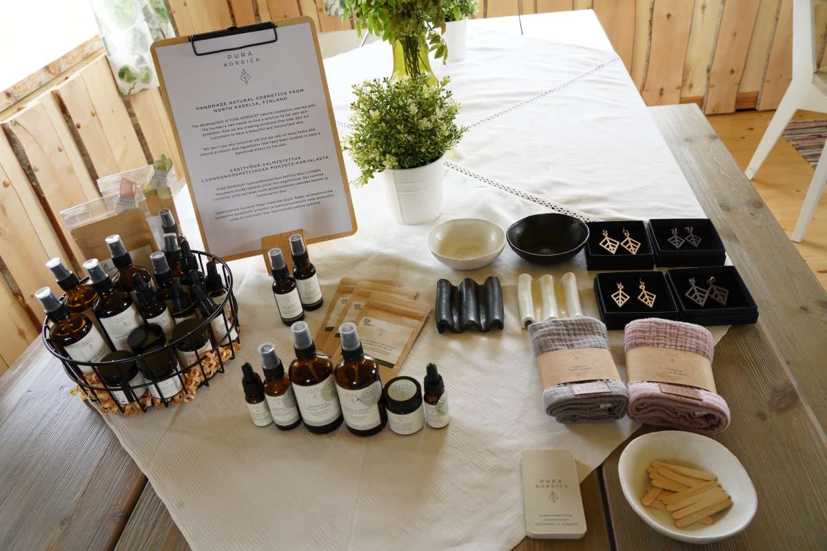 Früher war der Hof ein Ausbildungszentrum für landwirtschaftliche Berufe. Heute beherbergt er ein Restaurant, einen Hofladen und Minnas Eisfabrik By Maitola. Über 50 köstliche Eissorten entstehen hier – handgemacht aus der Bio-Milch der zufriedenen Kühe vom Koivikon Kartano und mit den besten Zutaten aus der Region. Nach unserem Eis-Workshop, in dem wir mit finnischen Himbeeren unser eigenes Eis kreieren, probieren wir auch die traditionellen Sorten wie Blaubeere, Preiselbeere und schwarze Johannisbeere. Danach folgen exotischen Kreationen: Weihnachtsmann-Eis, Brennnessel-Eis, Bier-Eis und ein markantes Teereis. Mein Tipp: Das Salmiak-Eis ist mein ganz persönlicher Favorit! Wer mag, kann bei Minna wie wir einen Eistag buchen und selbst Eis herstellen. Und das Tolle: Minnas Eis gibt es nicht nur in Kitee und Umgebung, sondern auch in einigen der Shops am Helsinkier Flughafen zu kaufen.Kürbissuppe, Blaubeer-Pannacotta und finnische Naturkosmetik