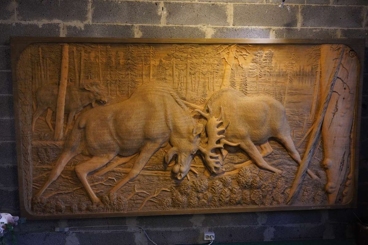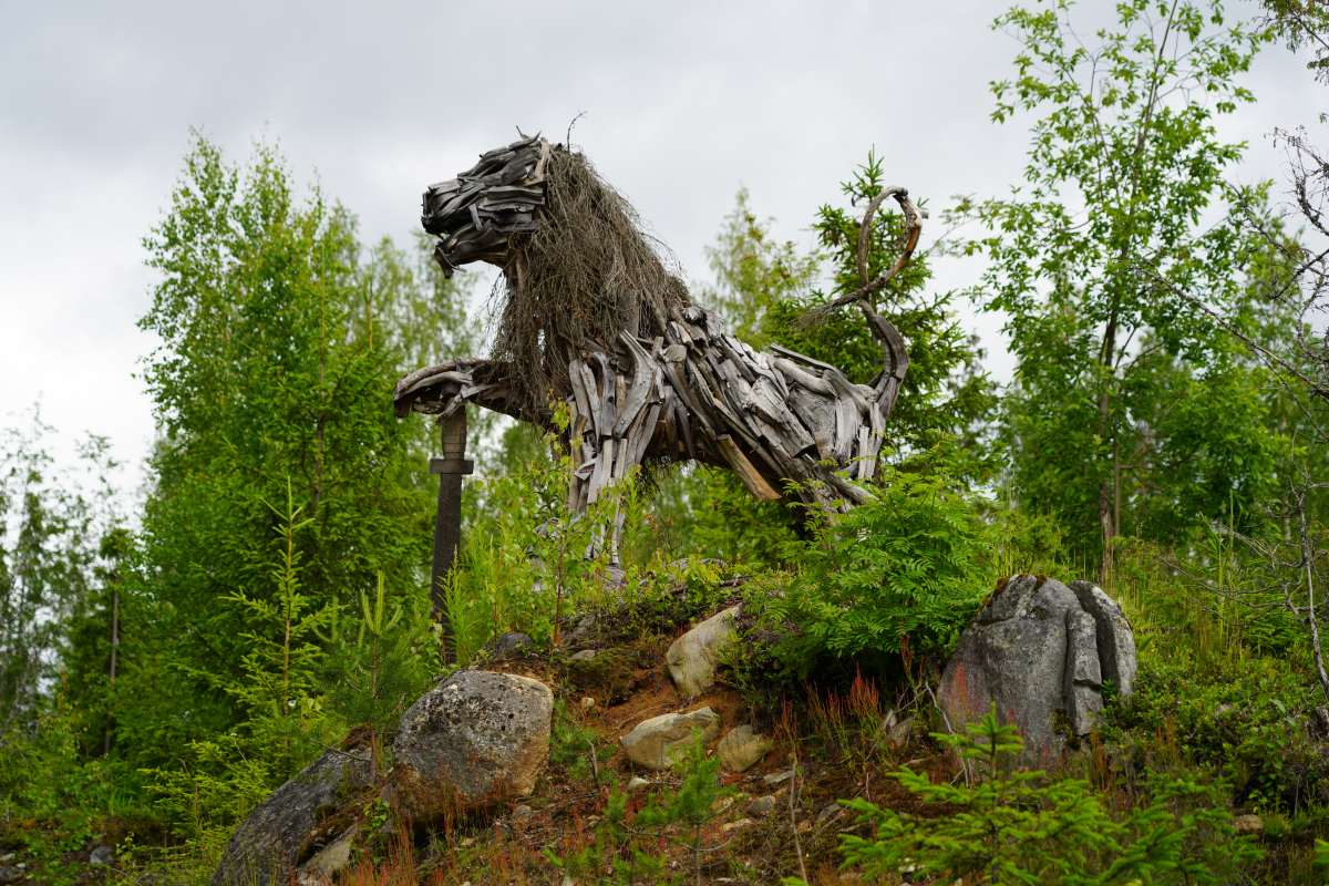 Natalia ist auch selbst eine renommierte Künstlerin. Im Außenbereich im idyllischen Arboretum rund um die Künstlerresidenz gibt es faszinierende Holzkunst von ihr und weiteren internationalen Künstlern zu entdecken, zum Beispiel einen großer Elch, einen Hase, einen Karpfen oder einen Löwen aus Holz. Im Sommer finden in den Atelierräumen gegenüber des Ausstellungsgebäudes Onnela auch Kunstkurse und Workshops zu lokalem Kunsthandwerk statt. Teilnehmer lernen hier, wie man auf verschiedene Weise Holz bearbeiten kann. Regelmäßig empfängt Natalia hier auch Touristengruppen, für die sie sogar selbst karelische Spezialitäten zubereitet.