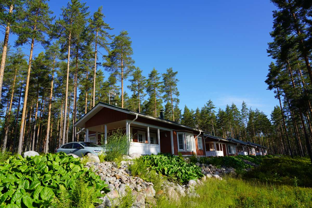 In Kesälahti, rund zwölf Kilometer südlich von Kitee am Ufer des Puruvesi-Sees, liegt das Ruokkeen Lomakylä, ein Feriendorf mit 50-jähriger Familientradition. Bei unserer Ankunft glänzen Oldtimer im Abendlicht, darunter ein hellblauer Cadilliac, ein goldfarbener Pontiac und ein alter Ford Mustang. Finnen lieben Oldtimer erfahren wir von einem Oldtimerfan. Das Feriendorf bietet Unterkünfte für jeden Geschmack: von rustikalen Holzhütten mit Gemeinschaftsbad bis zu modern ausgestatteten Sommerhäuschen mit privater Sauna. Hinzu kommt ein Campingplatz mit 85 Stellplätzen, der auch bei Dauercampern beliebt ist und der sogar eine E-Ladesäule hat und an den ein kleiner Bootshafen angrenzt.