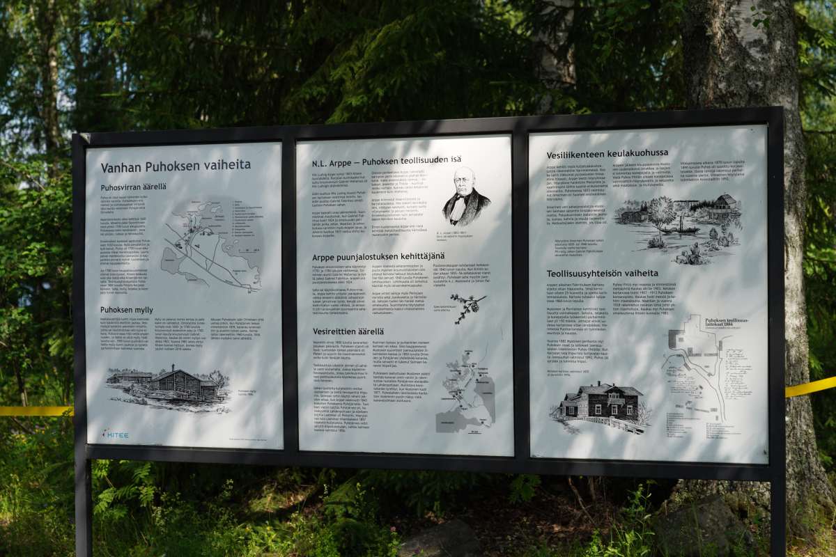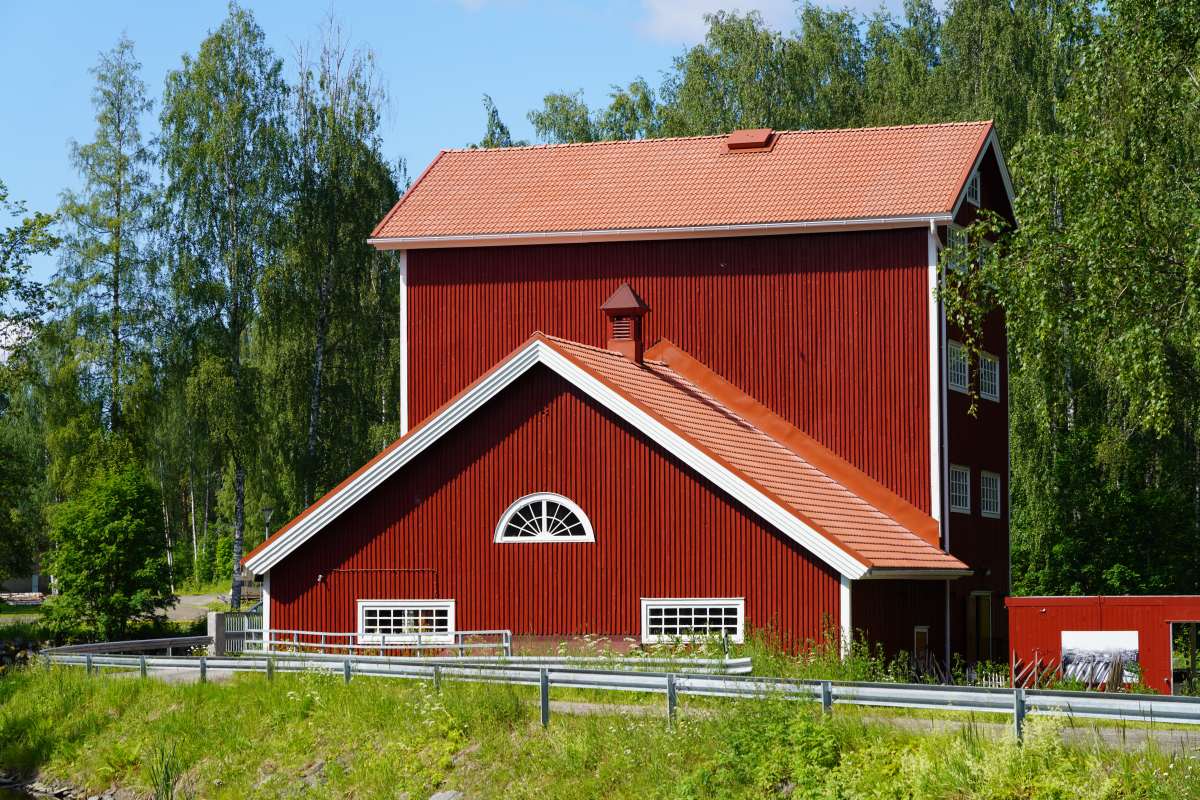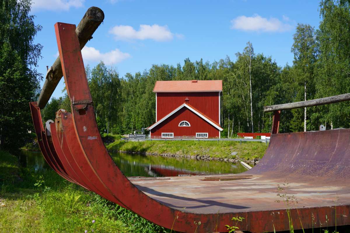 Danach besuchen wir das Dorf Wanha Puhos, nicht zu verwechseln mit dem gleichnamigen Industriegebiet. Noch heute wird hier im historischen Puhos Holz über den Puruvesi geflößt, ein Relikt aus der Blütezeit der Papierindustrie. Im Jahr 2024 wurde das Dorf außerdem zu Finnlands „Dorf des Jahres“ gekürt und das zu Recht: Die rotgestrichene Mühle mit den weißen Fenstersimsen hat Bullerbü-Charme und erinnert an die Geschichten von Michel aus Lönneberga.