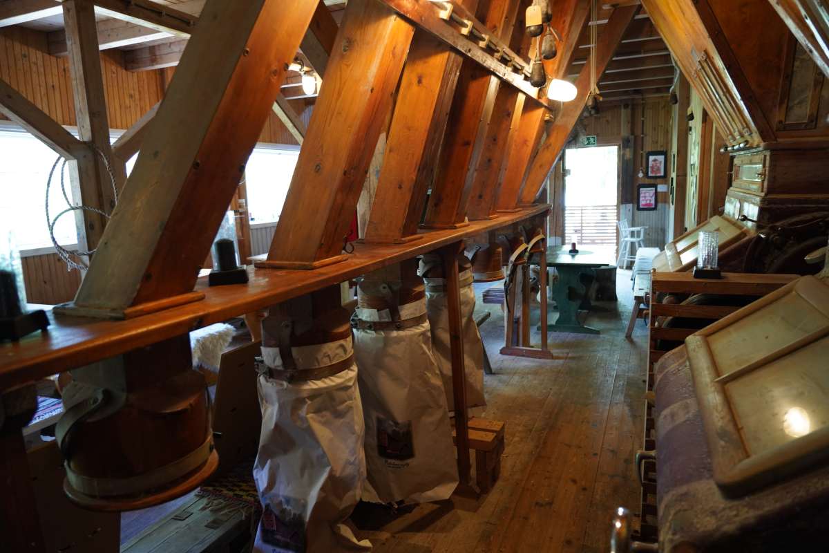 Die alte Wassermühle wurde ursprünglich im 17. Jahrhundert erbaut, brannte aber mehrfach nieder. Das heutige Gebäude stammt deshalb aus den 1950er-Jahren. Noch bis 2018 wurde hier im alten Teil von Puhos Getreide wie Hafer, Roggen oder Weizen gemahlen, der von den umliegenden Bauernhöfen angeliefert wurde. Inhaberin Minna Kaasalainen, die den Betrieb vor vier Jahren übernahm, erzählt uns, dass die Mühle noch immer funktionstüchtig ist, da sie regelmäßig von einem Spezialisten gewartet wird. Beim Betreten scheint die Zeit stillzusehen. Fast hat man das Gefühl, als würde man das leise Mahlen der Mühlsteine hören, mit denen hier Getreide zu Mehl gemahlen wurde.Mühlenrestaurant im alten Puhos: Spezialitäten und Eis aus der Region
